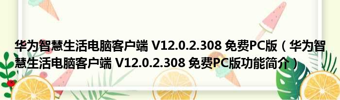 导读 大家好,关于华为智慧生活电脑客户端 V12 0 2 308 免费PC版,华为智慧生活电脑客户端 V12 0 2 308 免费PC版功能简介这个很多人还不知道,