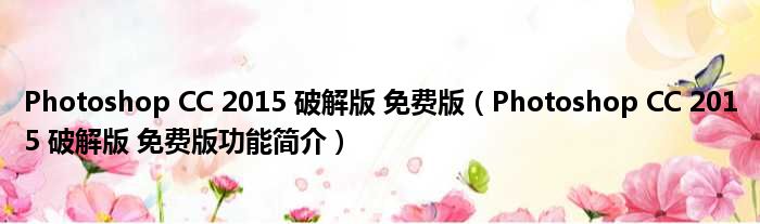 导读 大家好,关于Photoshop CC 2015 破解版 免费版,Photoshop CC 2015 破解版 免费版功能简介这个很多人还不知道,小勒来为大家解答以上