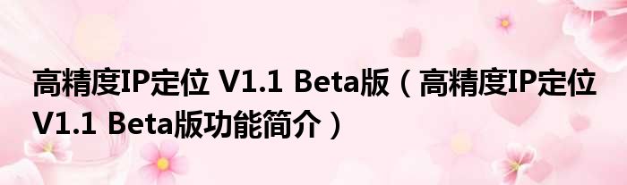 高精度IP定位 V1.1 Beta版(高精度IP定位 V1.1 Beta版功能简介)