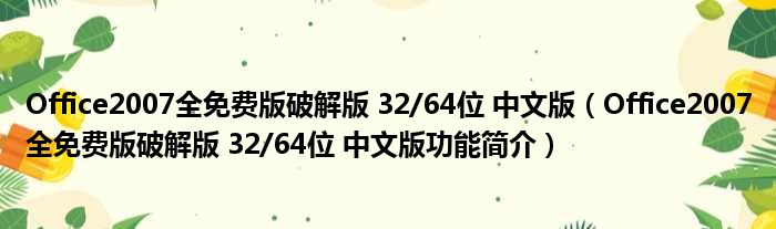 Office2007全免费版破解版 32/64位 中文版(Office2007全免费版破解版 32/64位 中文版功能简介)