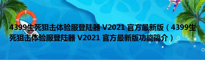 4399生死狙击体验服登陆器 V2021 官方最新版(4399生死狙击体验服登陆器 V2021 官方最新版功能简介)