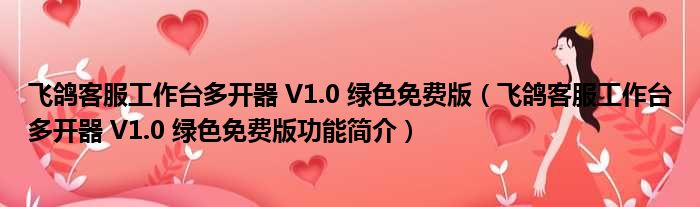 导读 大家好,关于飞鸽客服工作台多开器 V1 0 绿色免费版,飞鸽客服工作台多开器 V1 0 绿色免费版功能简介这个很多人还不知道,小勒来为大家解