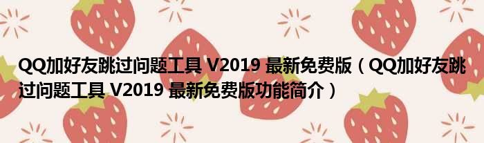 QQ加好友跳过问题工具 V2019 最新免费版(QQ加好友跳过问题工具 V2019 最新免费版功能简介)