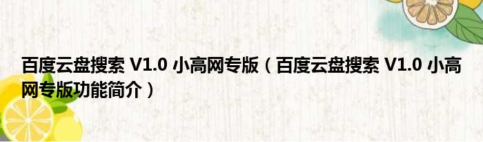 百度云盘搜索 V1.0 小高网专版(百度云盘搜索 V1.0 小高网专版功能简介)