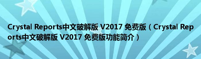 大家好,关于Crystal Reports中文破解版 V2017 免费版,Crystal Reports中文破解版 V2017 免费版功能简介这个很多人还不知道,小勒来为大家解答以上的问题,现在让我们一起来看看吧!