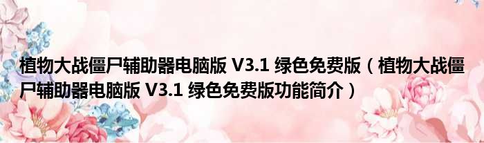 植物大战僵尸辅助器电脑版 V3.1 绿色免费版(植物大战僵尸辅助器电脑版 V3.1 绿色免费版功能简介)
