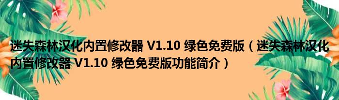 迷失森林汉化内置修改器 V1.10 绿色免费版(迷失森林汉化内置修改器 V1.10 绿色免费版功能简介)
