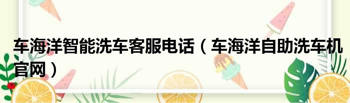 导读 大家好,今天小六子来为大家解答以下的问题,关于车海洋智能洗车客服电话,车海洋自助洗车机官网这个很多人还不知道,现在让我们一起来看看