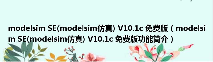 导读 大家好,关于modelsim SE(modelsim仿真) V10 1c 免费版,modelsim SE(modelsim仿真) V10 1c 免费版功能简介这个很多人还不知道,小勒来