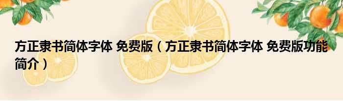 方正隶书简体字体 免费版(方正隶书简体字体 免费版功能简介)