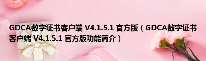 GDCA数字证书客户端 V4.1.5.1 官方版(GDCA数字证书客户端 V4.1.5.1 官方版功能简介)