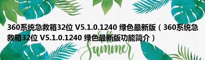 360系统急救箱32位 V5.1.0.1240 绿色最新版(360系统急救箱32位 V5.1.0.1240 绿色最新版功能简介)