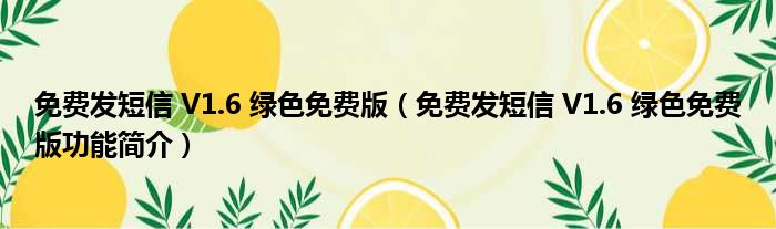 免费发短信 V1.6 绿色免费版(免费发短信 V1.6 绿色免费版功能简介)