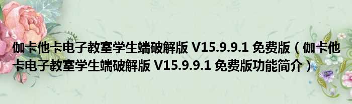 导读 大家好,关于伽卡他卡电子教室学生端破解版 V15 9 9 1 免费版,伽卡他卡电子教室学生端破解版 V15 9 9 1 免费版功能简介这个很多人还不