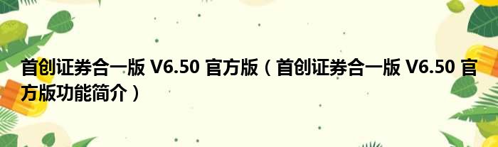 首创证券合一版 V6.50 官方版(首创证券合一版 V6.50 官方版功能简介)