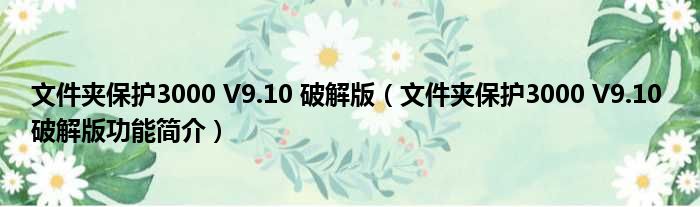 文件夹保护3000 V9.10 破解版(文件夹保护3000 V9.10 破解版功能简介)