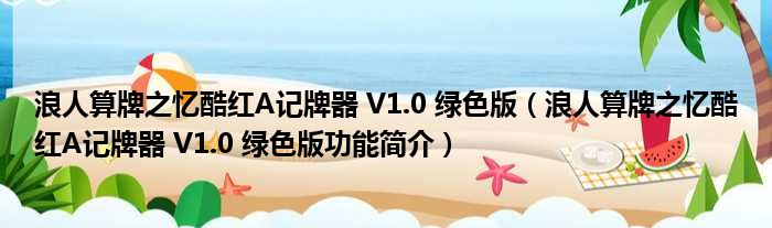 浪人算牌之忆酷红A记牌器 V1.0 绿色版(浪人算牌之忆酷红A记牌器 V1.0 绿色版功能简介)