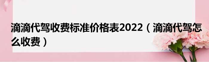 滴滴代驾收费标准价格表2022(滴滴代驾怎么收费)