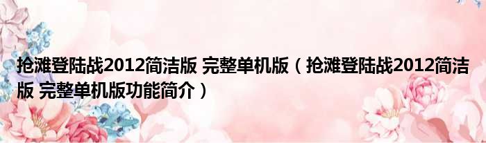 抢滩登陆战2012简洁版 完整单机版(抢滩登陆战2012简洁版 完整单机版功能简介)