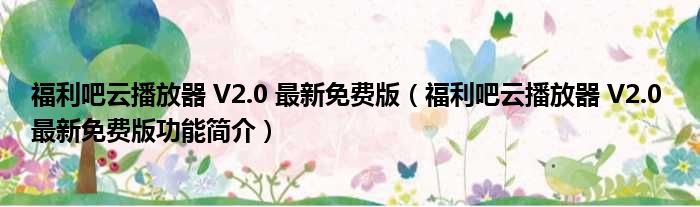 福利吧云播放器 V2.0 最新免费版(福利吧云播放器 V2.0 最新免费版功能简介)