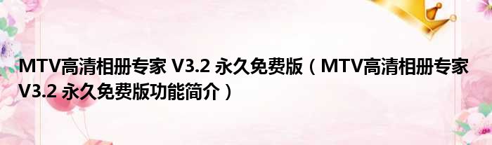 MTV高清相册专家 V3.2 永久免费版(MTV高清相册专家 V3.2 永久免费版功能简介)