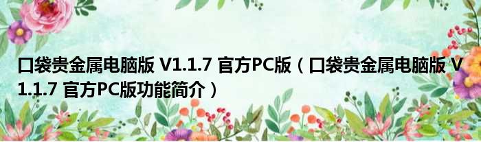 口袋贵金属电脑版 V1.1.7 官方PC版(口袋贵金属电脑版 V1.1.7 官方PC版功能简介)