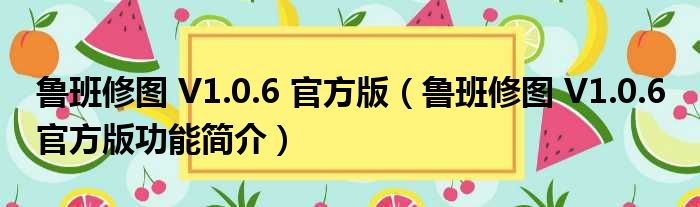 鲁班修图 V1.0.6 官方版(鲁班修图 V1.0.6 官方版功能简介)