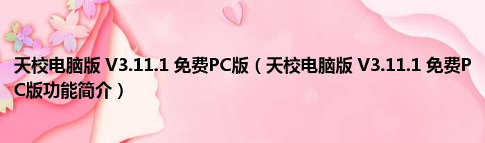 导读 大家好,关于天校电脑版 V3 11 1 免费PC版,天校电脑版 V3 11 1 免费PC版功能简介这个很多人还不知道,小勒来为大家解答以上的问题,现在