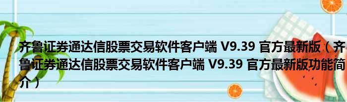 齐鲁证券通达信股票交易软件客户端 V9.39 官方最新版(齐鲁证券通达信股票交易软件客户端 V9.39 官方最新版功能简介)