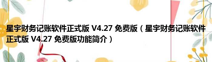 星宇财务记账软件正式版 V4.27 免费版(星宇财务记账软件正式版 V4.27 免费版功能简介)