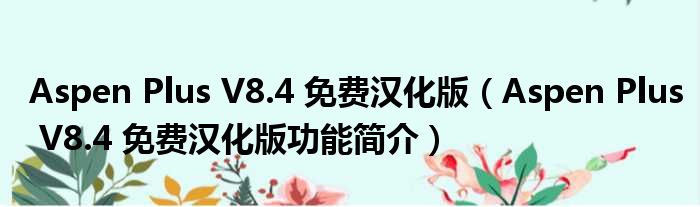 Aspen Plus V8.4 免费汉化版(Aspen Plus V8.4 免费汉化版功能简介)