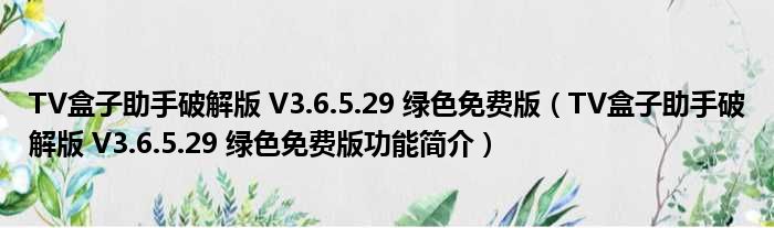 TV盒子助手破解版 V3.6.5.29 绿色免费版(TV盒子助手破解版 V3.6.5.29 绿色免费版功能简介)