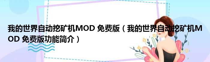 我的世界自动挖矿机MOD 免费版(我的世界自动挖矿机MOD 免费版功能简介)