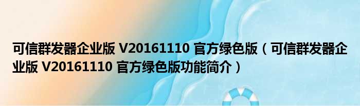 可信群发器企业版 V20161110 官方绿色版(可信群发器企业版 V20161110 官方绿色版功能简介)
