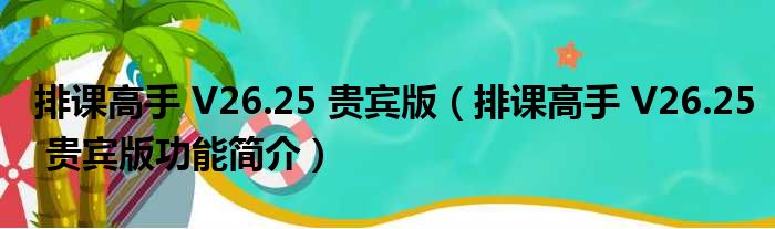 排课高手 V26.25 贵宾版(排课高手 V26.25 贵宾版功能简介)