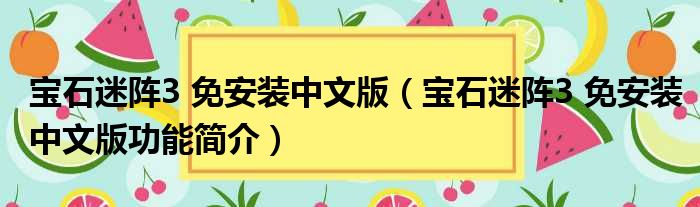 宝石迷阵3 免安装中文版(宝石迷阵3 免安装中文版功能简介)