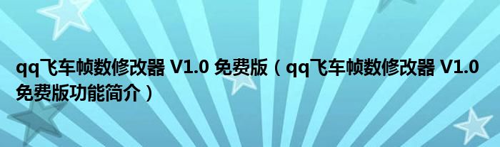 qq飞车帧数修改器 V1.0 免费版(qq飞车帧数修改器 V1.0 免费版功能简介)