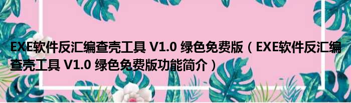EXE软件反汇编查壳工具 V1.0 绿色免费版(EXE软件反汇编查壳工具 V1.0 绿色免费版功能简介)
