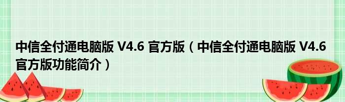 中信全付通电脑版 V4.6 官方版(中信全付通电脑版 V4.6 官方版功能简介)