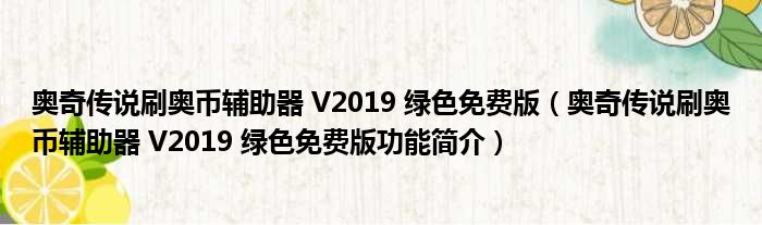 奥奇传说刷奥币辅助器 V2019 绿色免费版(奥奇传说刷奥币辅助器 V2019 绿色免费版功能简介)