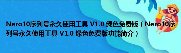 Nero10序列号永久使用工具 V1.0 绿色免费版(Nero10序列号永久使用工具 V1.0 绿色免费版功能简介)