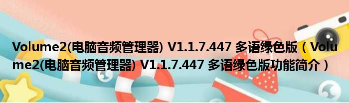 Volume2(电脑音频管理器) V1.1.7.447 多语绿色版(Volume2(电脑音频管理器) V1.1.7.447 多语绿色版功能简介)