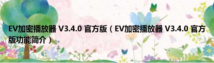 EV加密播放器 V3.4.0 官方版(EV加密播放器 V3.4.0 官方版功能简介)