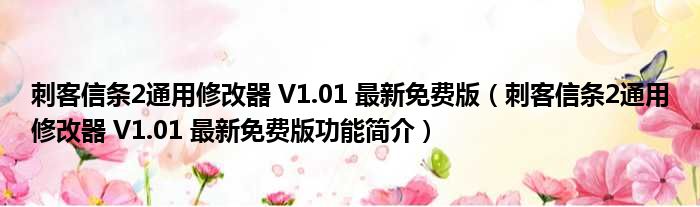 导读 大家好,关于刺客信条2通用修改器 V1 01 最新免费版,刺客信条2通用修改器 V1 01 最新免费版功能简介这个很多人还不知道,小勒来为大家解