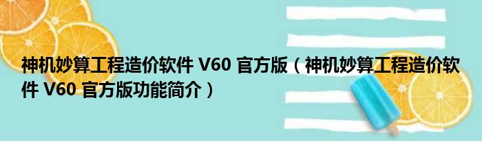 神机妙算工程造价软件 V60 官方版(神机妙算工程造价软件 V60 官方版功能简介)