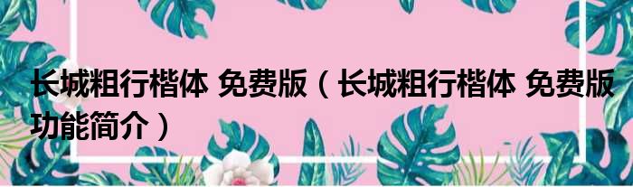 长城粗行楷体 免费版(长城粗行楷体 免费版功能简介)