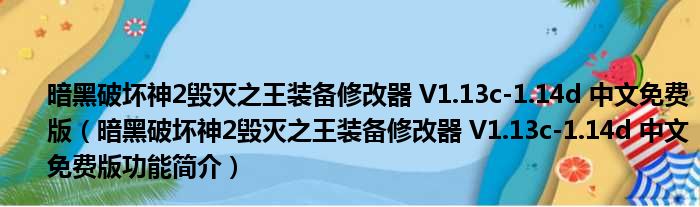 暗黑破坏神2毁灭之王装备修改器 V1.13c-1.14d 中文免费版(暗黑破坏神2毁灭之王装备修改器 V1.13c-1.14d 中文免费版功能简介)