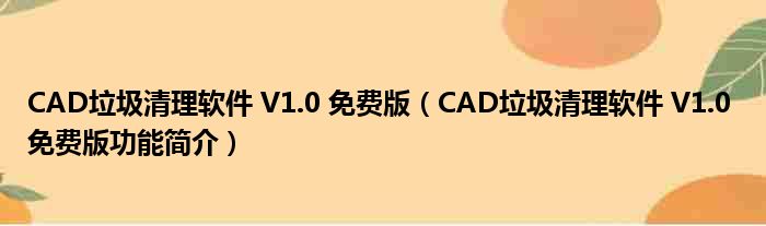 CAD垃圾清理软件 V1.0 免费版(CAD垃圾清理软件 V1.0 免费版功能简介)