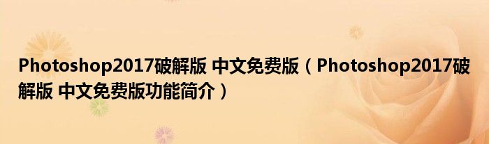 Photoshop2017破解版 中文免费版(Photoshop2017破解版 中文免费版功能简介)
