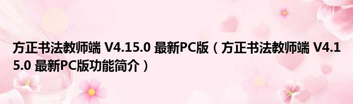 导读 大家好,关于方正书法教师端 V4 15 0 最新PC版,方正书法教师端 V4 15 0 最新PC版功能简介这个很多人还不知道,小勒来为大家解答以上的问
